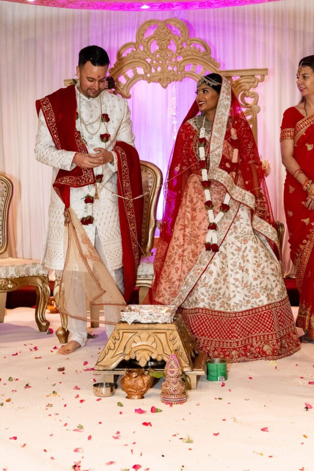 Kanyadaan: The Kanyadaan is the giving away of the bride by her father. The father places the bride’s hand in the groom’s hand, and the groom accepts her.
